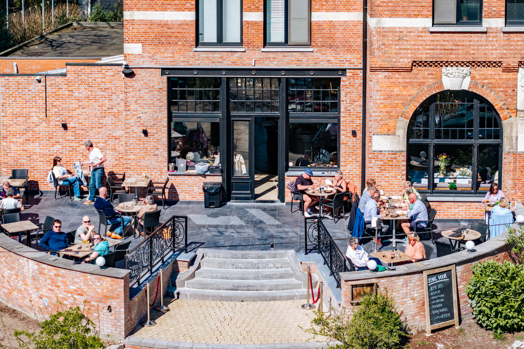 Gelegen in het centrum van Kapellen, met een ruim terras omgeven door groen. Het is een fijne plek om rustig te genieten van een maaltijd of een drankje.